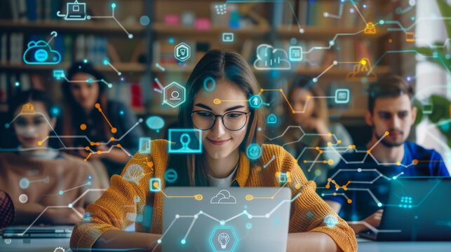 Innovative teamwork and digital networking in modern office
