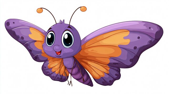 Adorable Cute Butterfly Cartoon Illustration on White Background