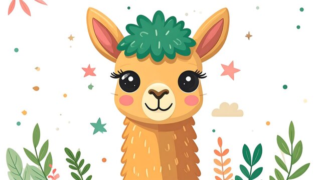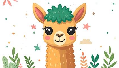 A llama dons a vibrant party hat, surrounded by falling confetti, adding joy to the celebratory moment