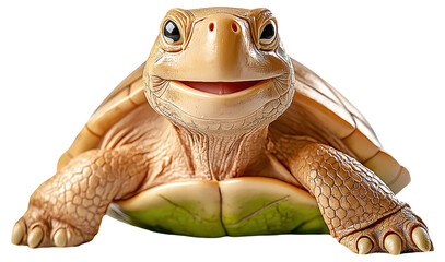 A cheerful, cartoon-style turtle with big eyes and a friendly smile, set against a clean white background.