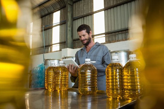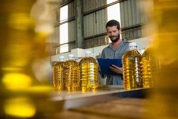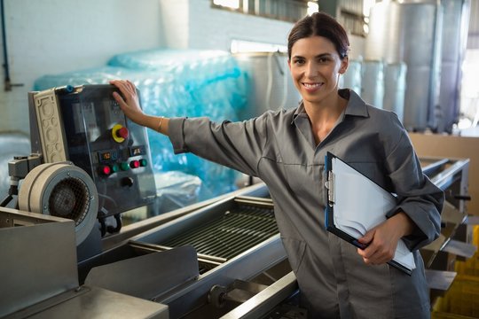 Smiling Worker Holding Clipboard In Olive Factory Images