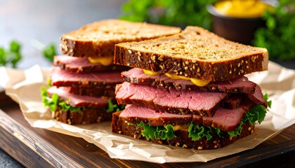 Cut a large piece of smoked beef brisket to the ribs with a dark crust. Classic Texas barbecue