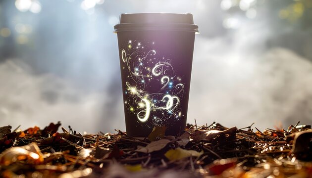 Gnarled trees with fiery and mystical roots at dusk in smoky haze
