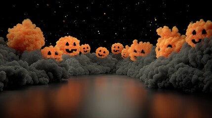 Neon script happy thanksgiving sign with orange glow and smoky haze on dark background