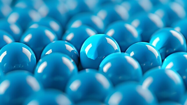 Clear glass balls on a serene blue backdrop, minimalist design, and basking in intense sunlight - a captivating setting.