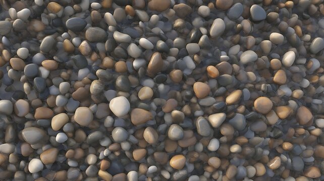 Tranquil pebble beach texture, smooth stones creating a soothing background, perfect for coastal designs and natural themes with earthy tones and subtle shimmer