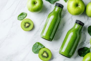 Set with color smothies in glass bottles with copy space on white background, mock-up