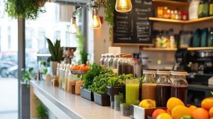 Fresh fruit smoothies in glass bottles, a vegetarian concept