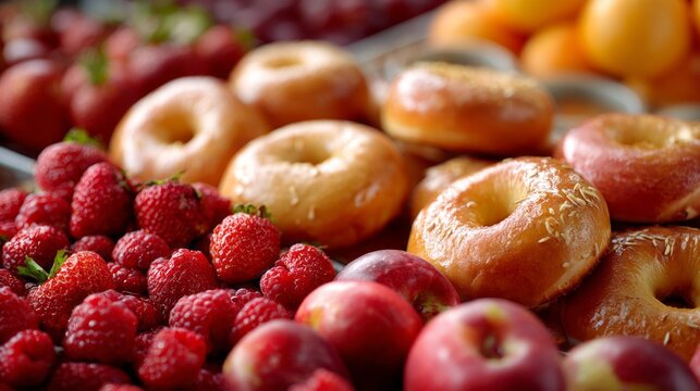 Fresh fruit and pastries arranged for office catering event providing healthy snack options