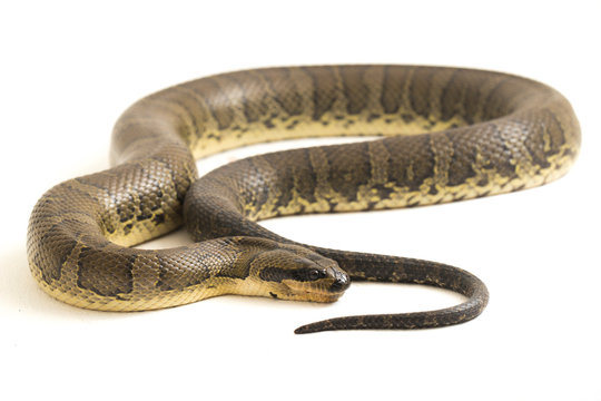 Common puff-faced water snake (Homalopsis buccata), banded water snake, or banded puff-faced water snake isolated on white background