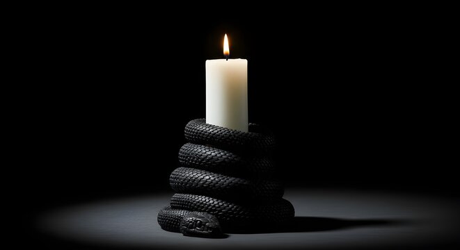 Halloween candle holder shaped like a black snake wrapped around a white candle, minimal and creative decoration.