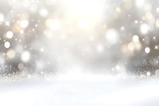 Shimmering silver bokeh light effect softly blending into a solid white background.