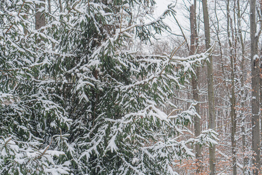 Snow Covered Bare Branches Creating Winter Abstract Pattern Images