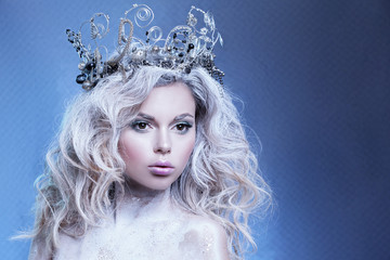 Beautiful portrait of a young girl. The image of a snow queen with a crown on his head.  New Year theme.