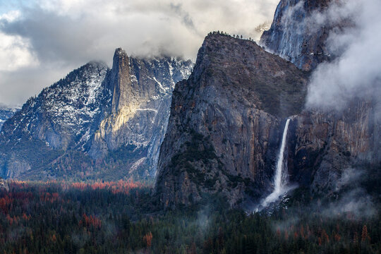 Bridalveil Falls seen from Tunnel View in Yosemite National Park.