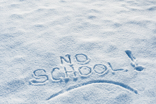 NO SCHOOL writing in the snow after a storm