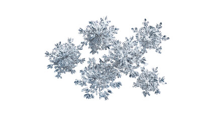 A collection of white snowflakes arranged in a loose cluster against a light blue background.