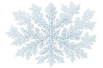 Unique natural snowflake creating a delicate symmetrical winter ice crystal structure on transparent background