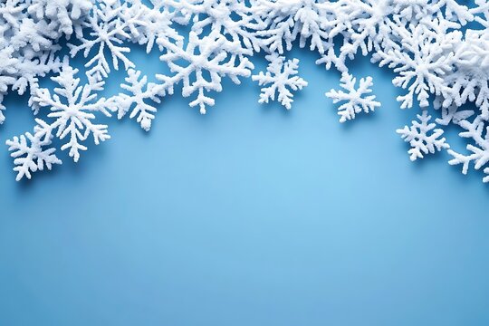 Festive snowflakes border on blue
