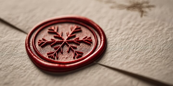 Elegant red wax seal featuring a snowflake design on a textured paper envelope during winter season