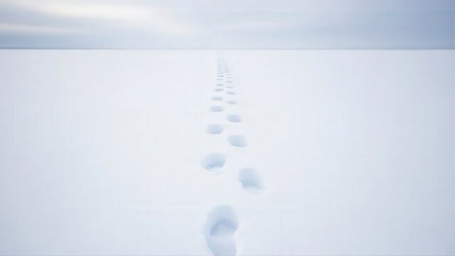 First footprints traverse glowing snowfield beneath clear and gentle sky