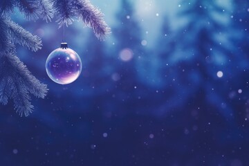 Winter Christmas background with falling snowflakes on blue background. Background for design with copy space