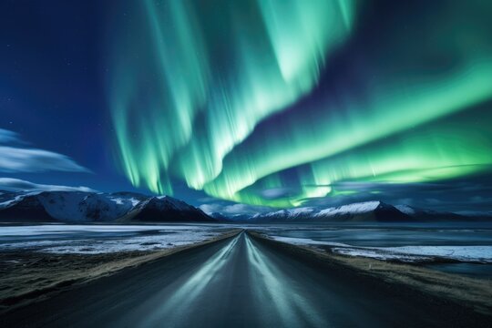 empty road with aurora borealis colorful sky