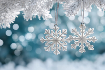 Decorative abstract silver glitters with blurred bokeh effect background. Christmas and New Year decoration banner
