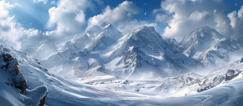 Majestic Snow Covered Mountain Peaks Under a Bright Winter Sun