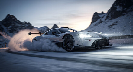 Winter journey through the snowy mountain range a semi truck driving down a snowcovered road