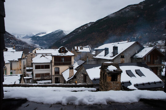 A close-up of Santa's boots on a snowy roof, evoking the festive spirit of Christmas in a magical winter setting.