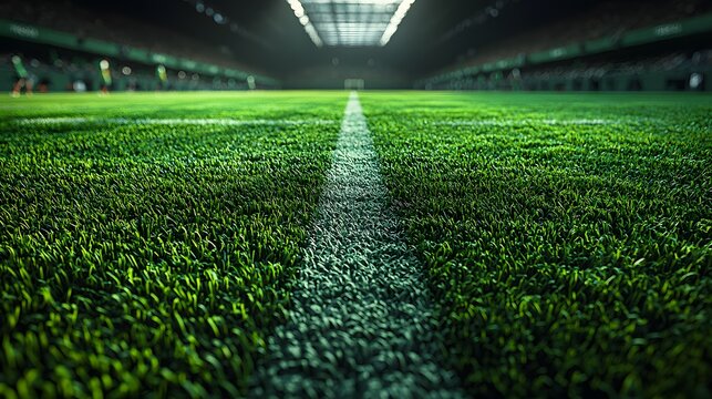 The image capturing the American Football ball positioned prominently at the center of stadium that illuminated by lighting epic grandeur to the atmosphere.