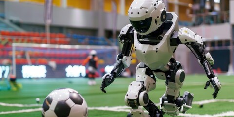 Soccer miniature and dice on artificial turf symbolizing sports strategy