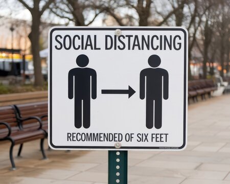 Illustrative sign promotes societal safety with distancing recommendations