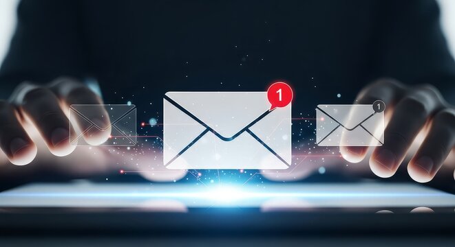 Futuristic social media notifications in digital space