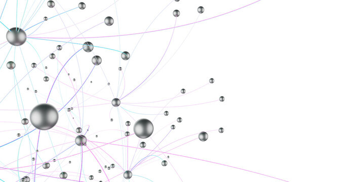 Neural network 3D illustration. Big data and cybersecurity. Data stream. Global database and artificial intelligence. Bright, colorful background with bokeh effect