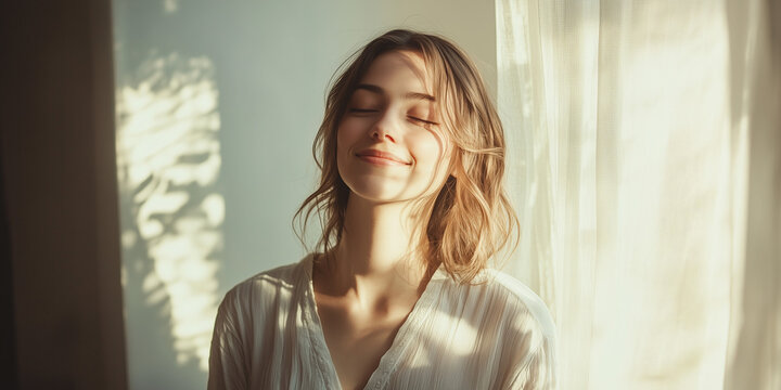 Peaceful contemplation of a young woman with closed eyes and soft expression