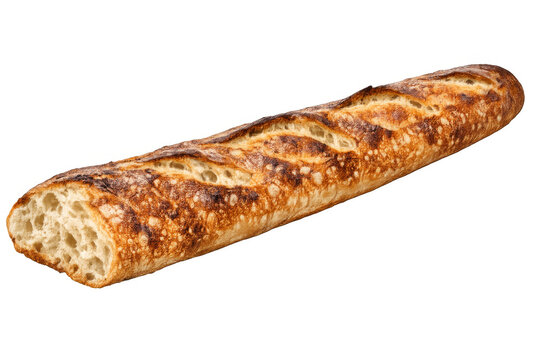 French baguette with a perfectly golden, crispy crust and soft, open crumb, featuring a transparent background