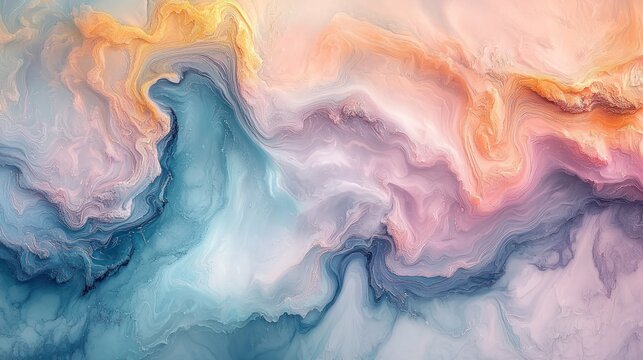 Soft fluid texture blending various pastel colors creates a dreamy, ethereal, and tranquil background, representing concepts like grace, beauty, luxury, and serenity