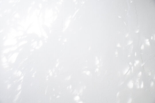 Gray shadows of leaves on a white wall