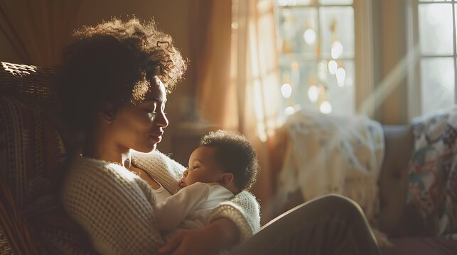 A serene image of a mother breastfeeding her baby in a cozy home setting, celebrating World Breastfeeding Week. The room is softly lit, creating a warm and nurturing atmosphere.