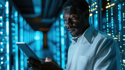 Innovative engineer coding in tech server room