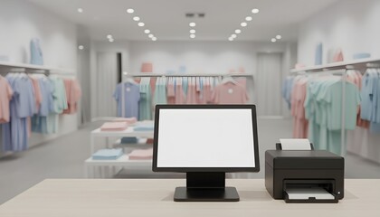 A terminal machine in a store or restaurant, white blank screen, mock up design
