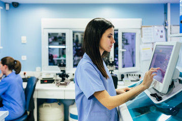 Healthcare professional administers test in modern clinic