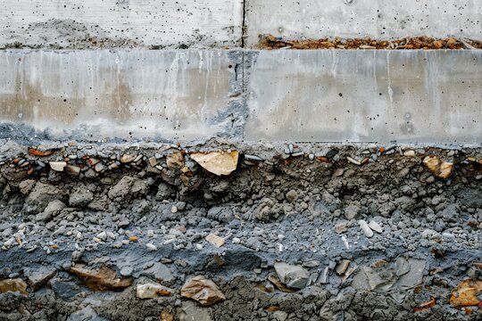 Close-up crushed gravel soil texture with angular rock fragments for backgrounds