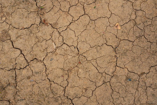 The surface of the earth was cracked by drought, cracks and erosion in the soil. Brown dry soil or cracked ground texture background. clay soil texture after water dry out and arid.