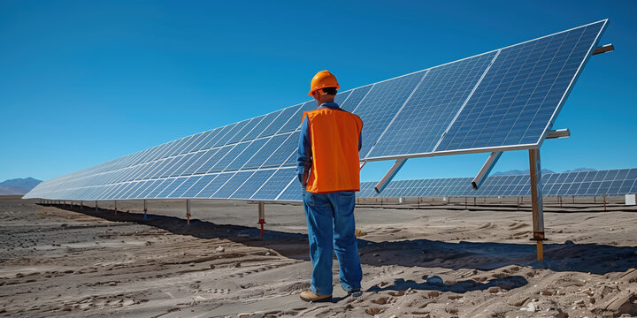 Engineer maintaining solar panels for sustainable energy