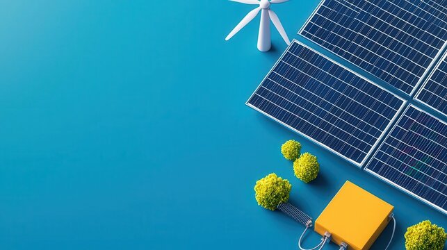 A photo realistic landscape featuring modern solar panels against a clear blue sky, symbolizing eco-friendly technology and a sustainable future.