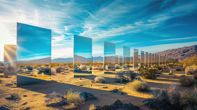 Solar panels across desert landscape during sunset illustrating renewable energy