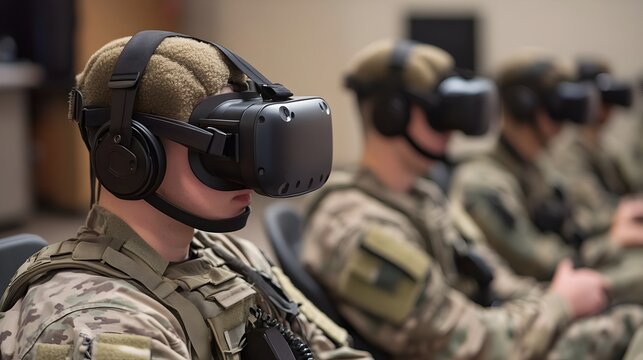 Military Soldiers Using Virtual Reality for Combat Training Exercises